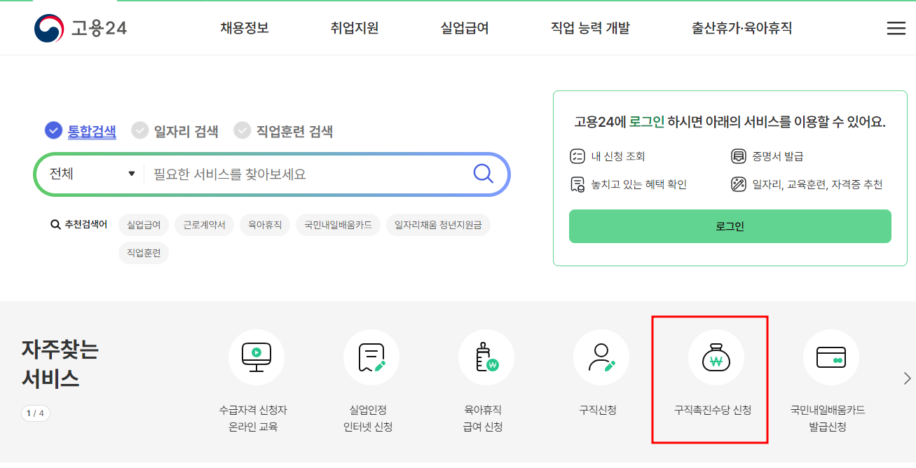 1. 웹사이트 접속: 국민취업지원제도 또는 고용24 홈페이지에 로그인