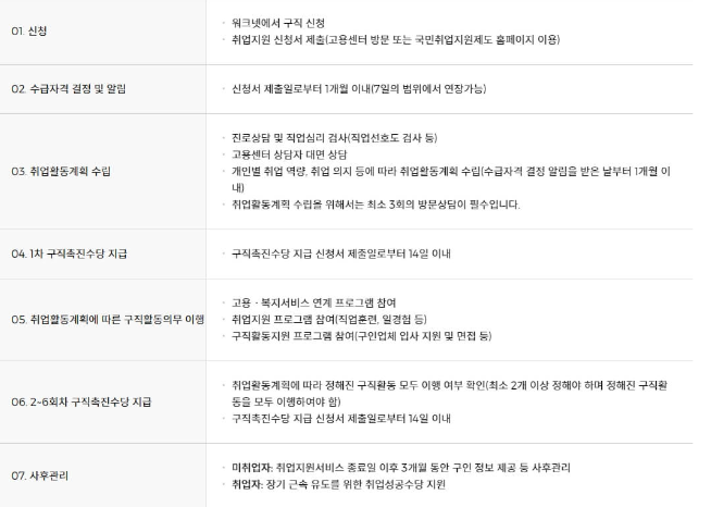 ✅ 구직 활동: 이력서 제출, 면접 등 적극적으로 구직 중이어야 합니다.